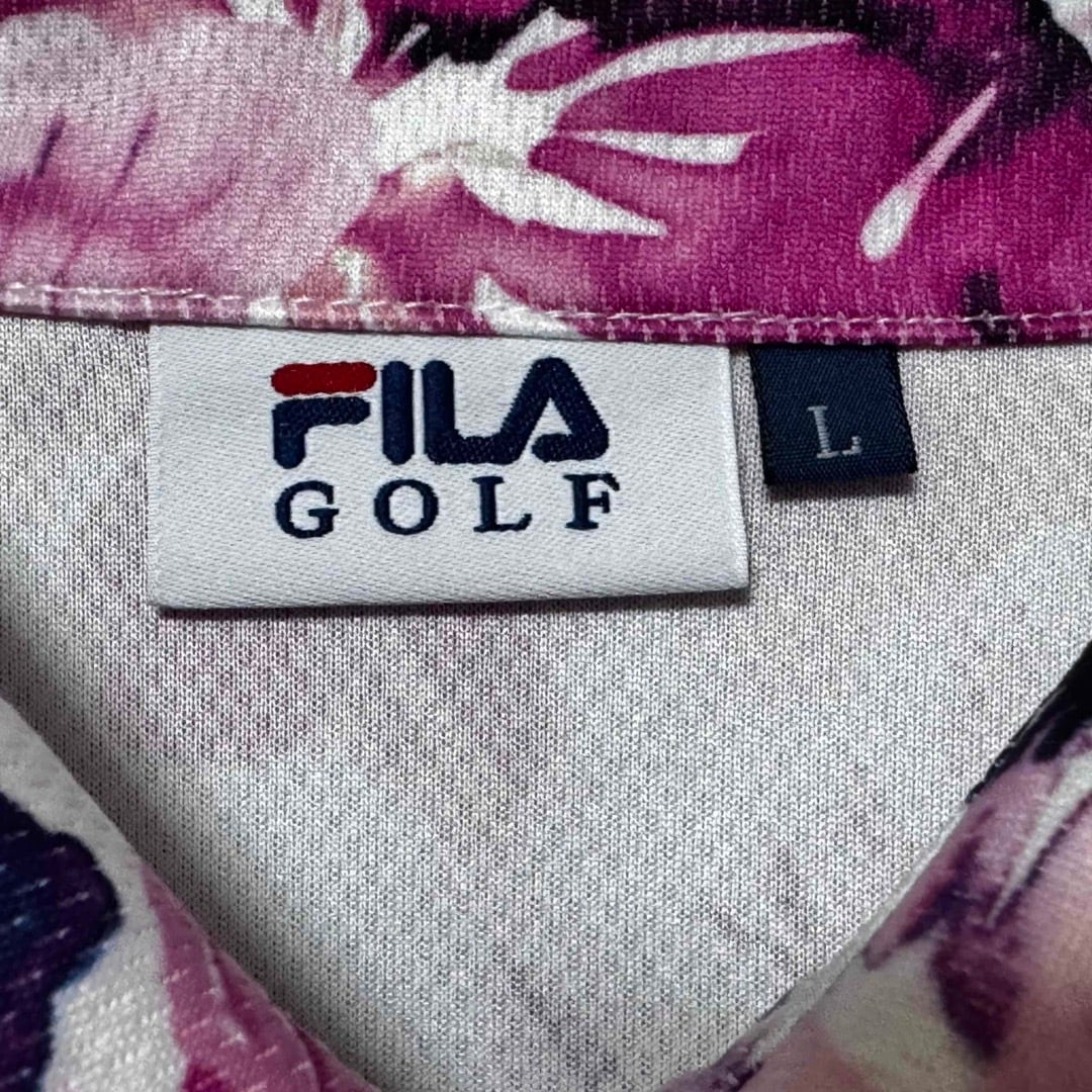 FILA GOLF フィラゴルフ 総花柄 半袖 ポロシャツ ピンク系 L ロゴ メンズ ゴルフ ウェア