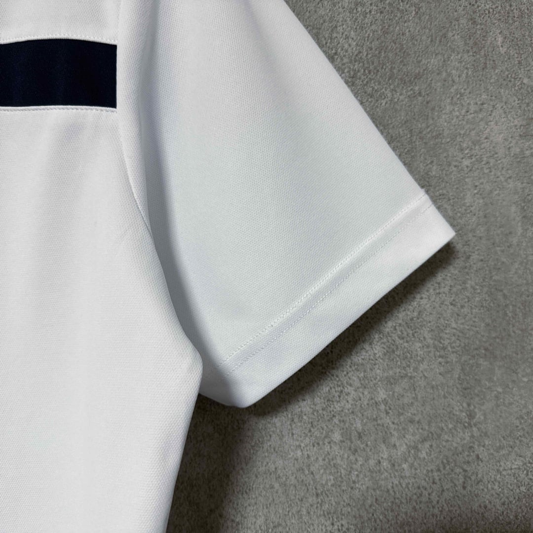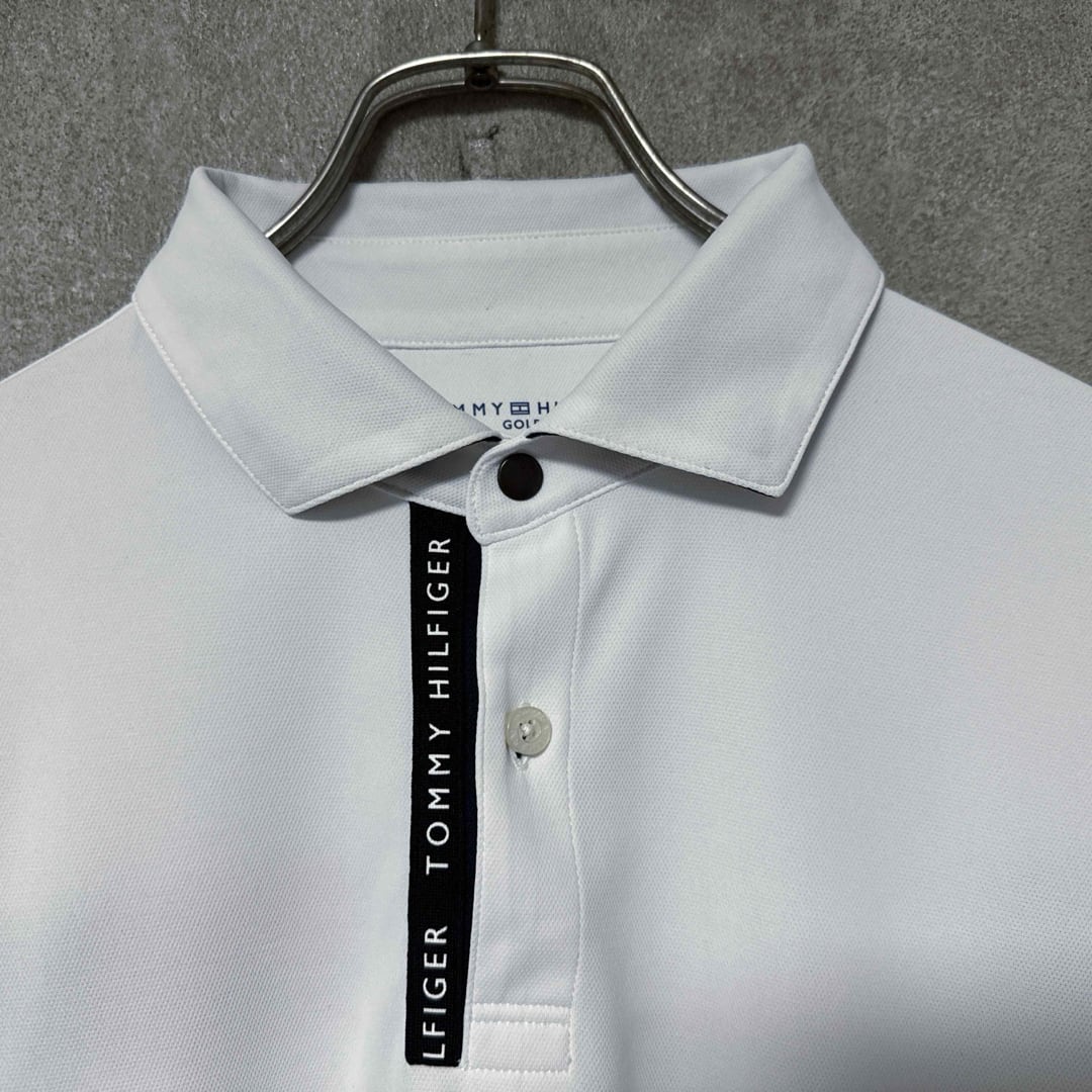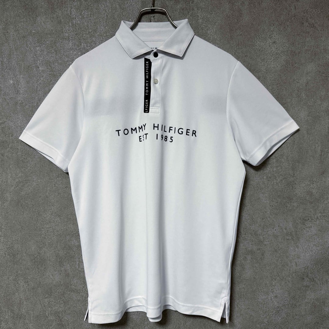 TOMMY HILFIGERのロゴデザインが映える、クリーンな白の半袖ポロシャツです。前面はブランドロゴ、背面はフラッグ配色ライン入りで、ゴルフはもちろん春夏のきれいめカジュアルやスポーティーコーデにも使いやすい1枚です。